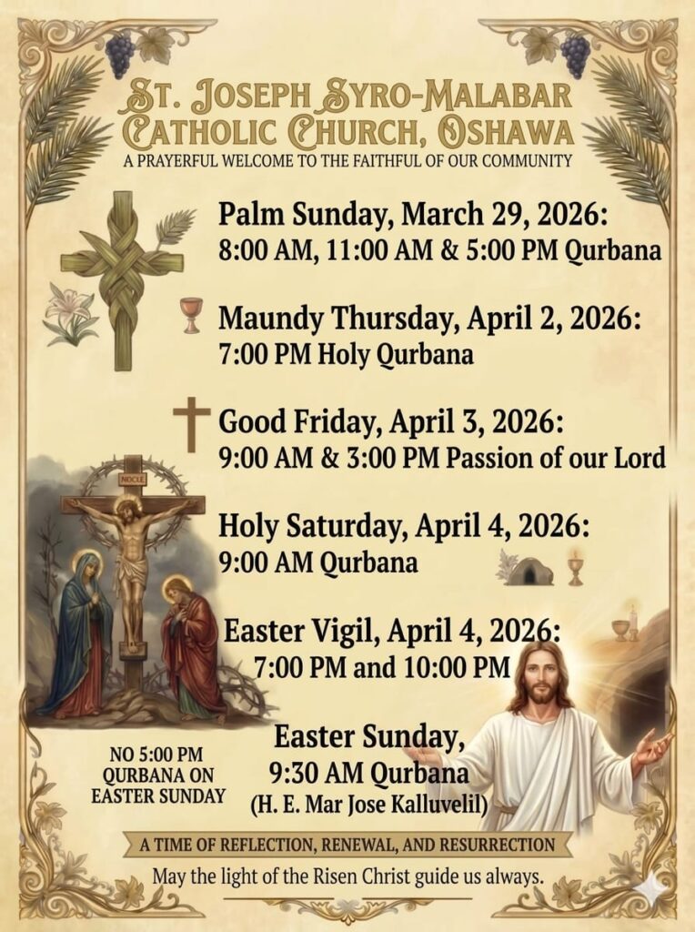 Holy Week Schedule Published by St. Joseph Syro - Malabar Catholic Church on 03/27/2026 Categories Uncategorized Tags Share0 St. Joseph Syro - Malabar Catholic ChurchLeave a Reply Cancel replyYou must be logged in to post a comment.